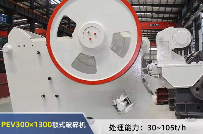 PEV300×1300顎破進(jìn)料粒度要小于250mm,出20-90mm的砂石料,時(shí)產(chǎn)量30-105噸,配置55或75千瓦的電機(jī),機(jī)器重量有11噸,外形長(zhǎng)2150mm,寬2390mm,高1590mm。