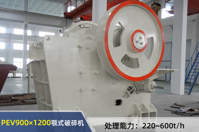 PEV900×1200顎式破碎機(jī)可處理粒度≤760mm的各類(lèi)物料,出料調(diào)節(jié)范圍100-220mm之間,每小時(shí)產(chǎn)量在220-600噸范圍內(nèi)。