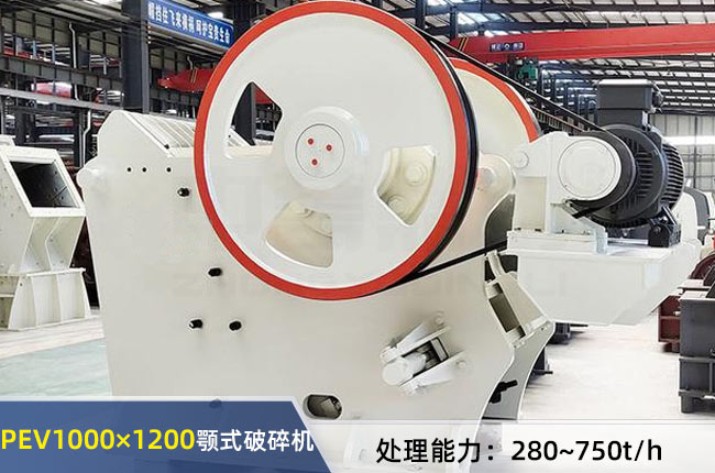 PEV1000×1200顎式破碎機(jī)它允許破碎<850mm的物料,能加工出150~300mm之間的碎石,可加工花崗巖、玄武巖、鵝卵石等各類礦石,每小時產(chǎn)量280-750噸。