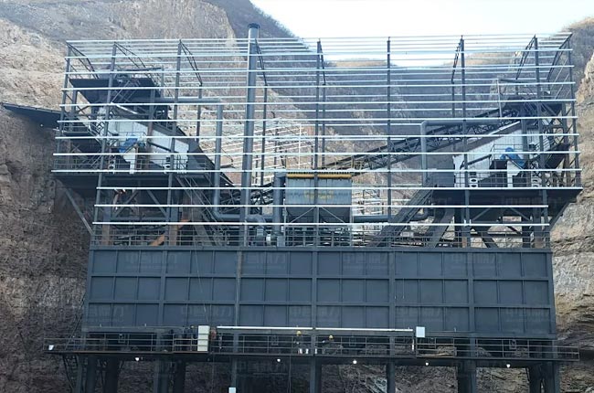 河北涉縣該項目立體式骨料生產(chǎn)線設計,具有生產(chǎn)結(jié)構(gòu)緊湊,場地優(yōu)化等特點。振動篩設備安裝于料倉頂部,大大節(jié)省安裝、輸送、結(jié)構(gòu)等成本。