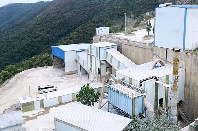 主破碎機和二破安裝現(xiàn)場,進料環(huán)節(jié)都配套了收塵設(shè)備,減少揚塵。