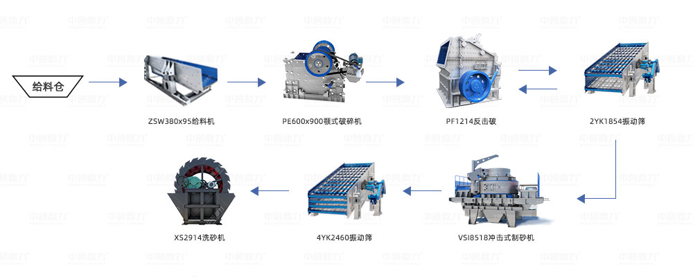 適合原料粒度較小,無需采用粗碎設(shè)備,直接中細碎加工后,通過制砂機制砂,投資相對要小些