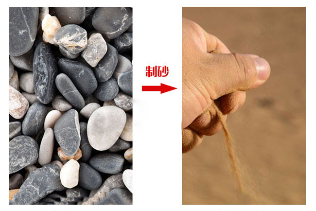 4.小于40mm的河卵石會由1140沖擊式制砂機(jī)制砂;